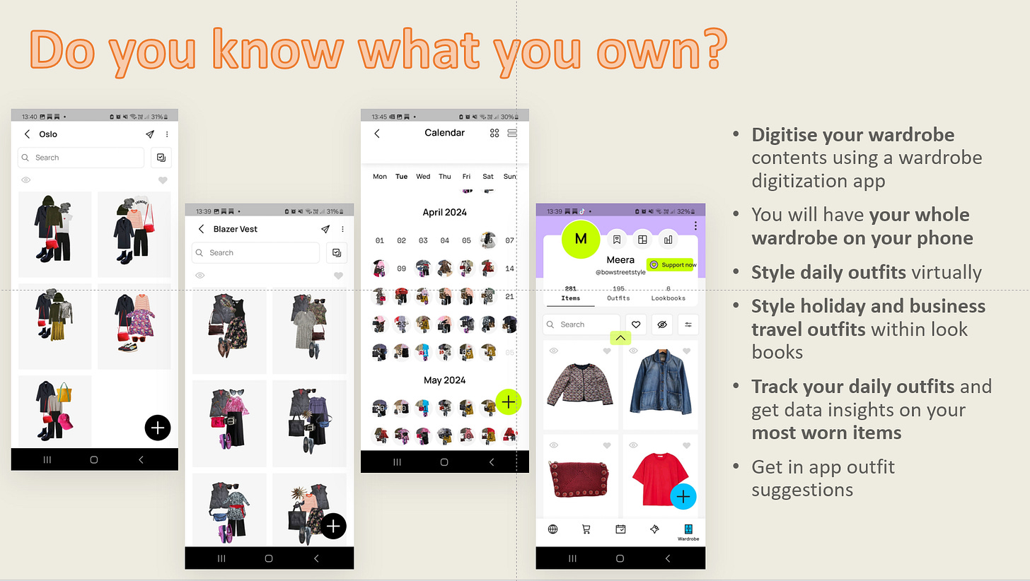 I have digitised my wardrobe using the app Whering so I can see how any new purchases can fit in and be styled with my existing wardrobe, it's hugely addictive making new outfit combinations from my own wardrobe, and I can easily see if something is actually needed or how it will look with other pieces I have!